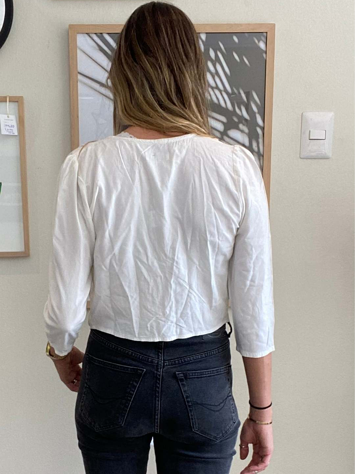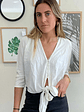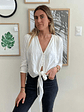 Blusa Manga Larga Botones Blanca Amarra Lalalou