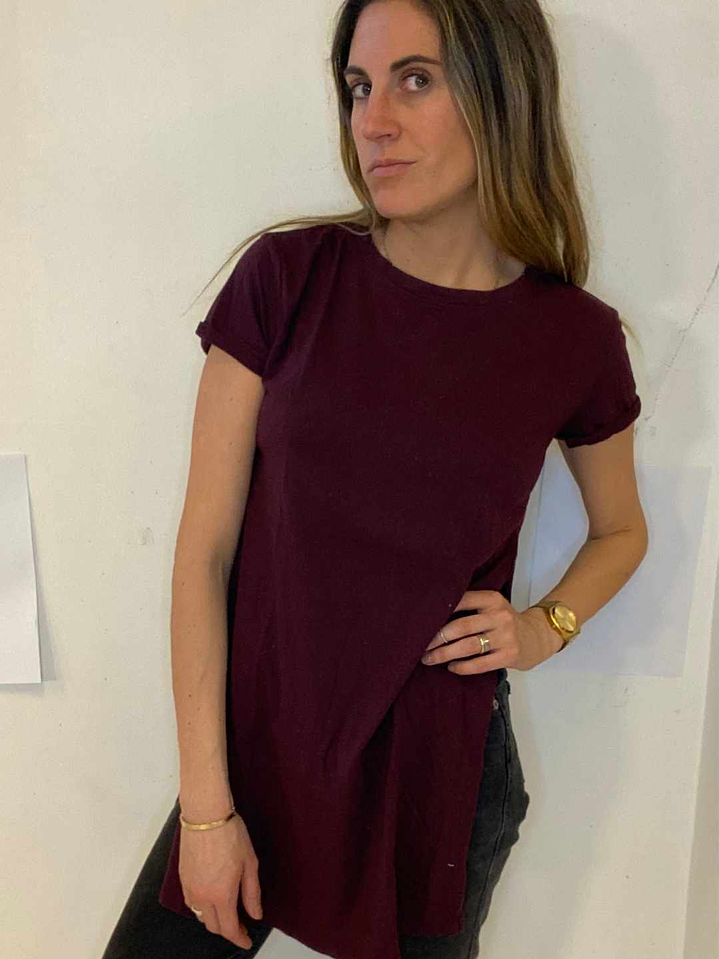 Polera Burdeo Manga Corta Larga Aberturas Laterales Talla S Forever 21