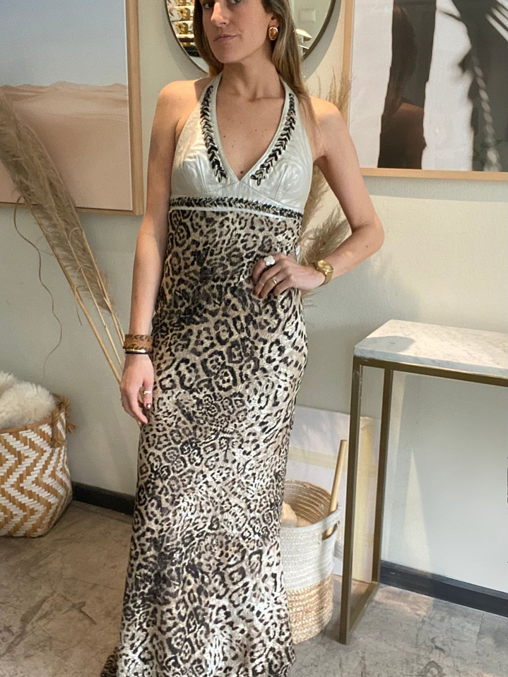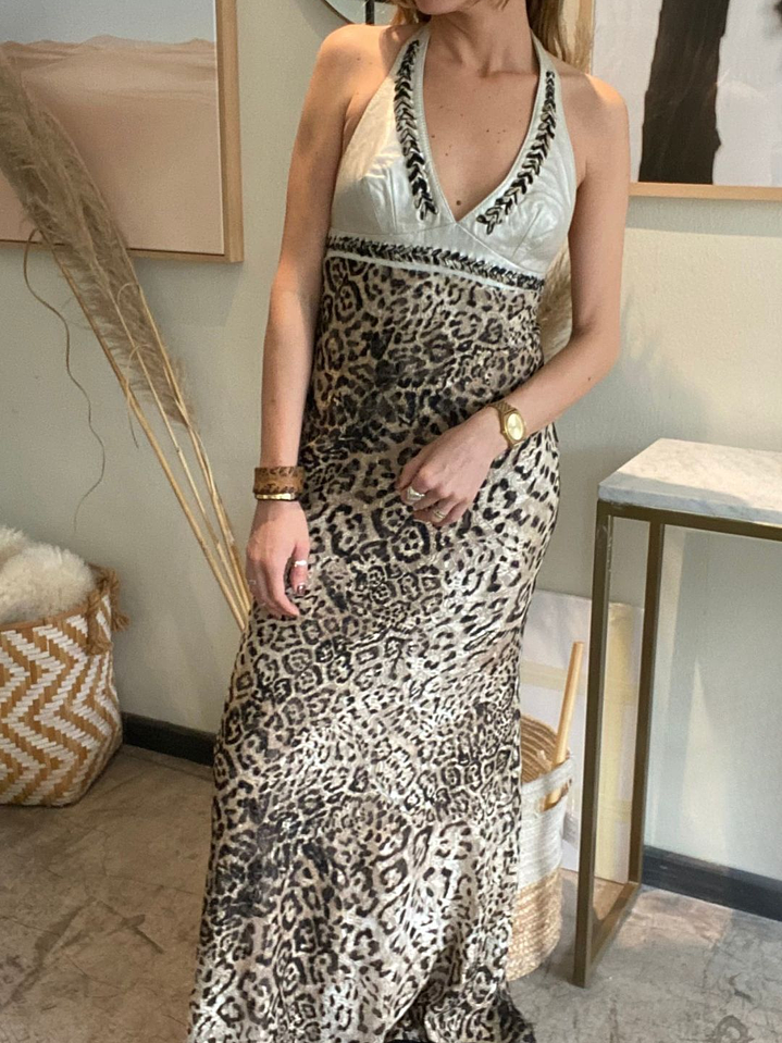 Vestido Elegante Print Escote De Cuero Talla XS Artezanal