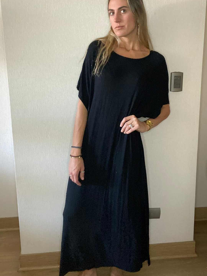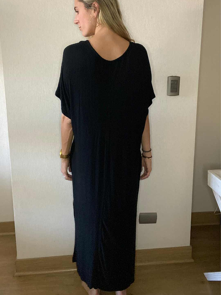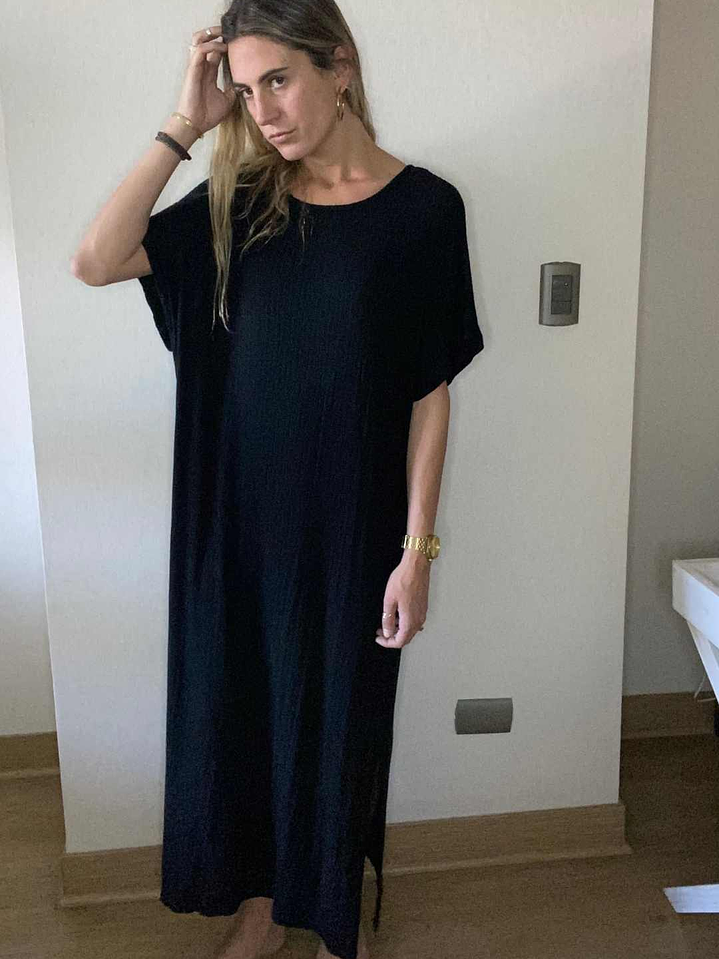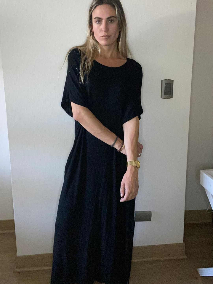 Vestido Negro Oversize Con Bolsillos