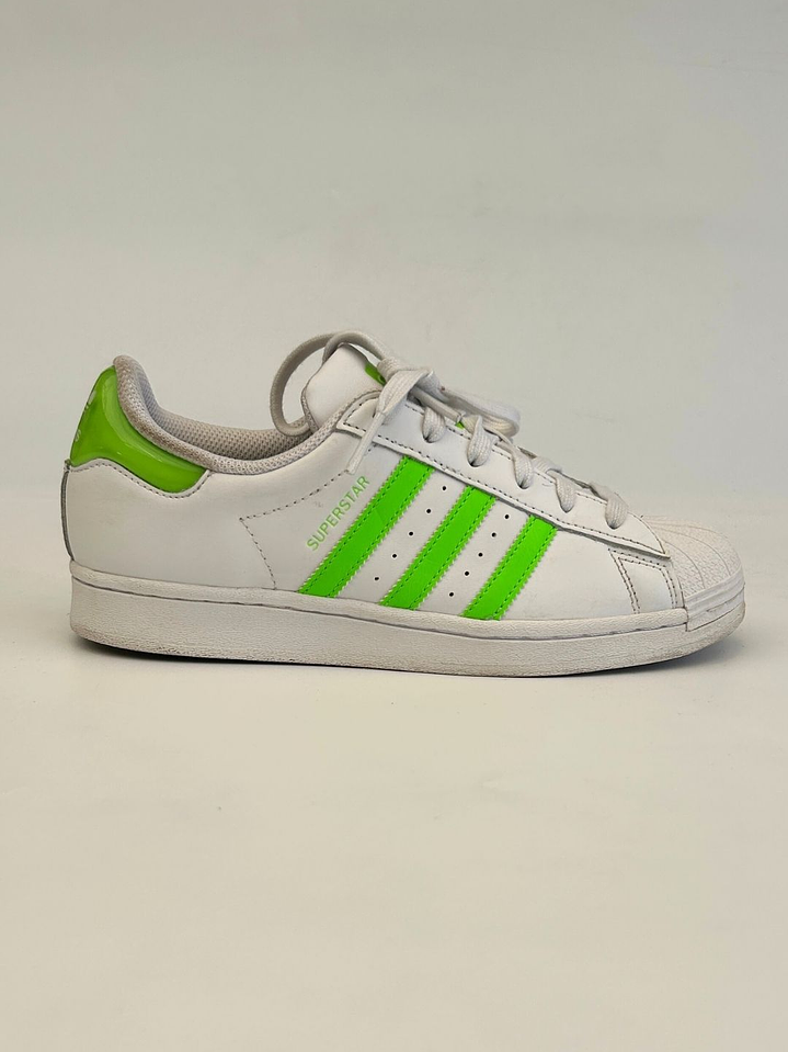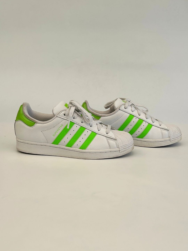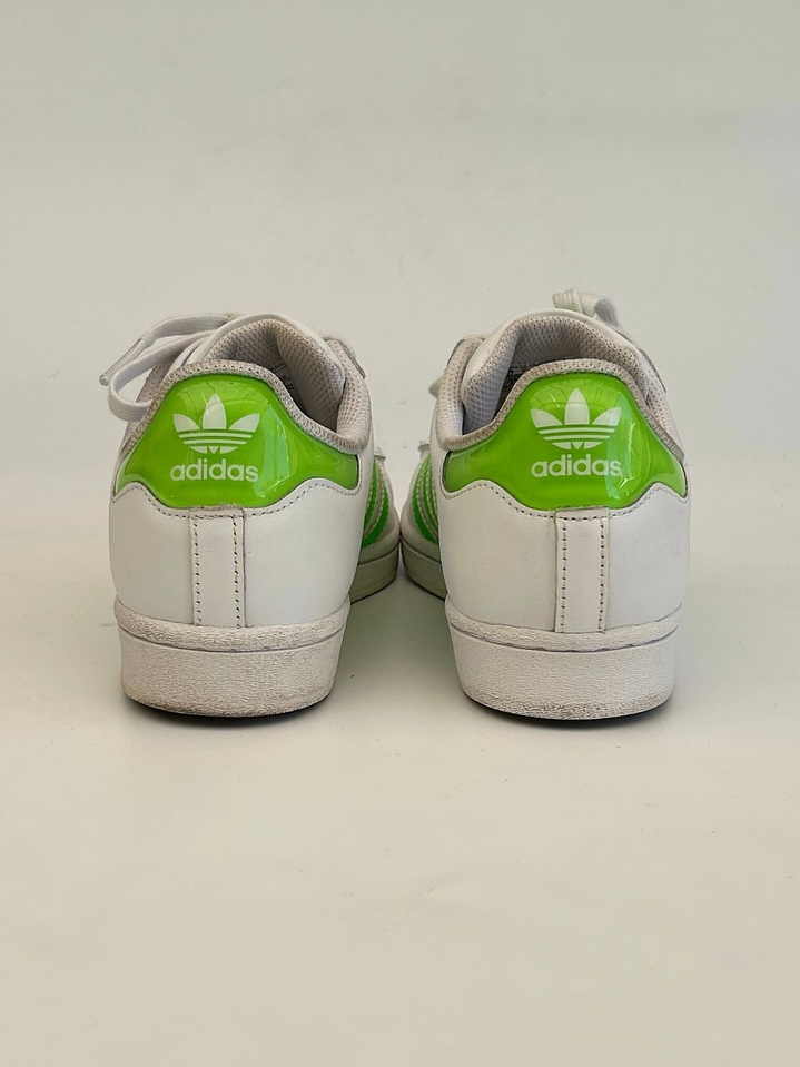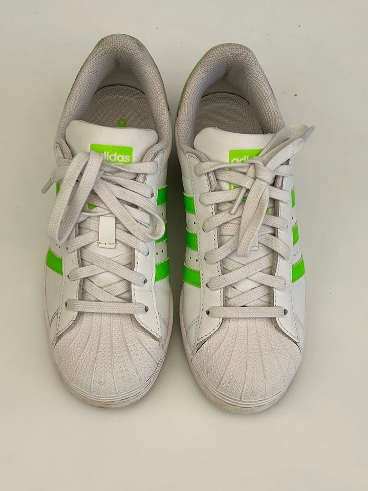 Zapatillas Blancas Rayas Verde Fluor Talla 38 Adidas