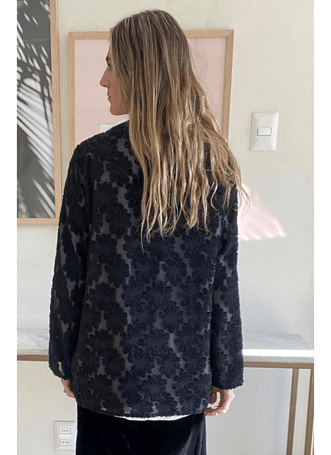 Kimono Negro Flores Bordadas Talla L Zara