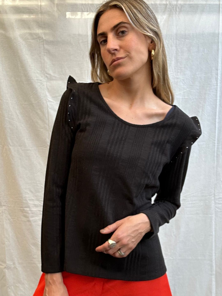 Polera Grueza o Chaleco delgado Negro Vuelitos en los Hombros Talla M ASH