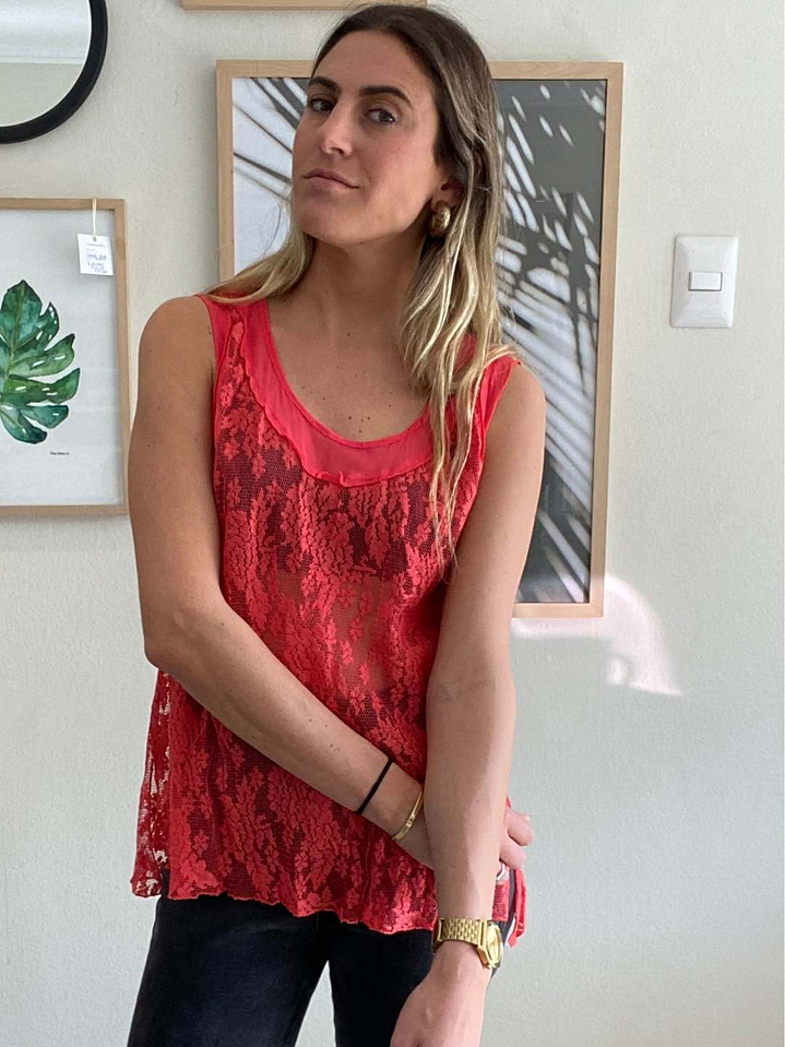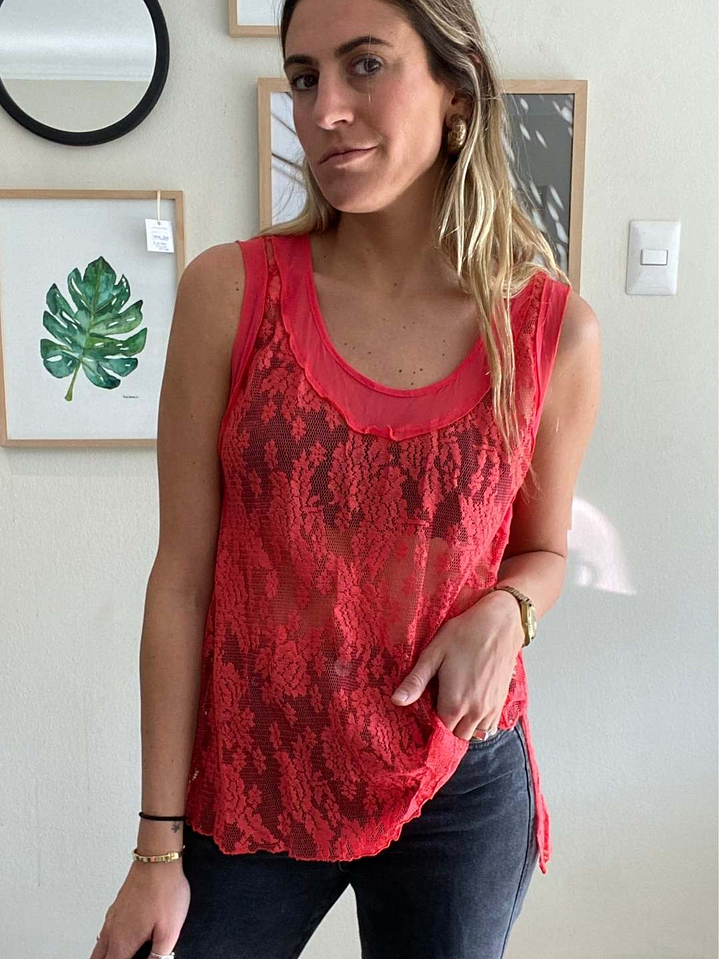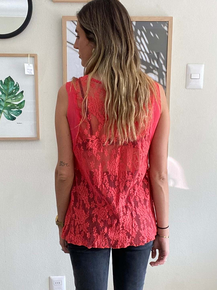 Polera Sin Mangas Encaje Color Sandía Talla L Umbrale
