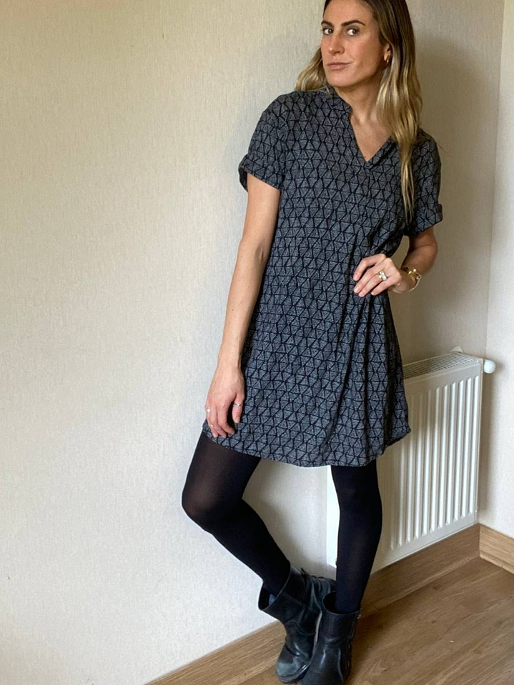 Vestido Manga corta Negro Con Diseños Talla S H&M