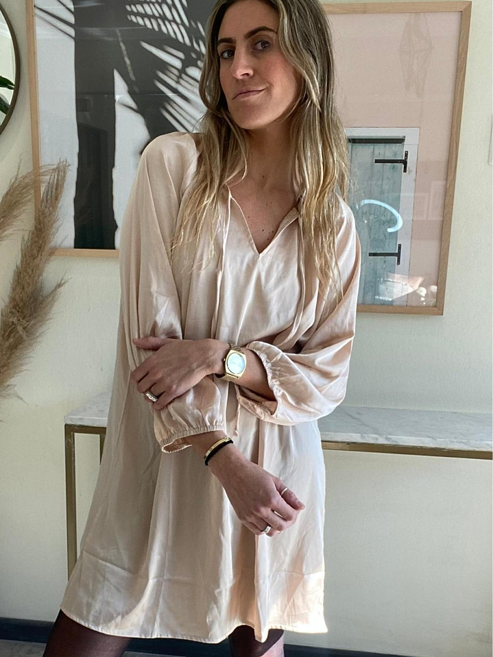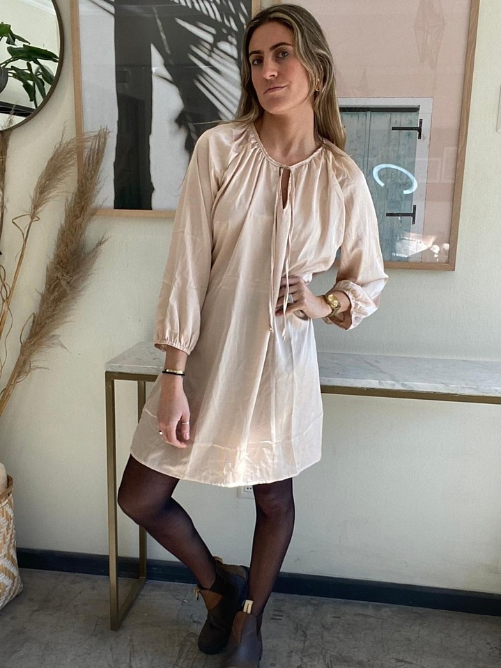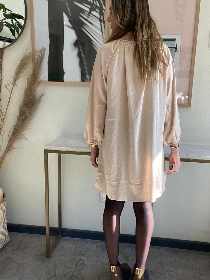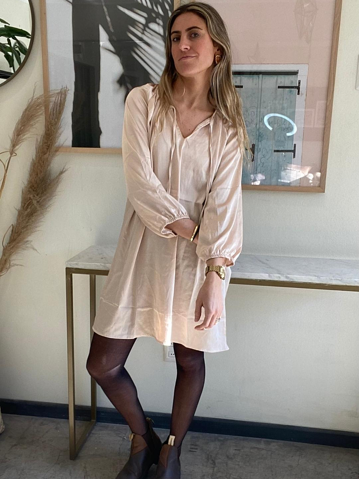 Vestido Satinado Rosado Claro / Beige Talla M Jacinta Tienda Con Etiqueta